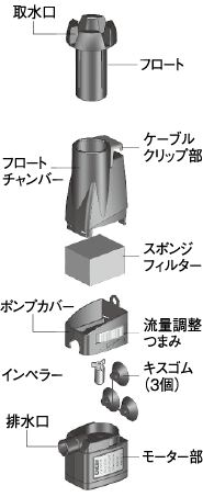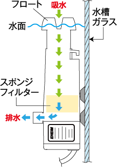 水槽の大きさに合わせて流量の調節も可能です。 - ポンプを内蔵。