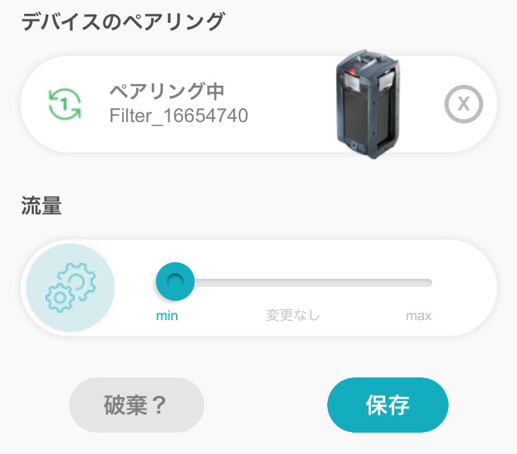 プロフェッショナル5eとペアリングさせることで、給餌後の10分間、流速を弱めたり強めたりできます。