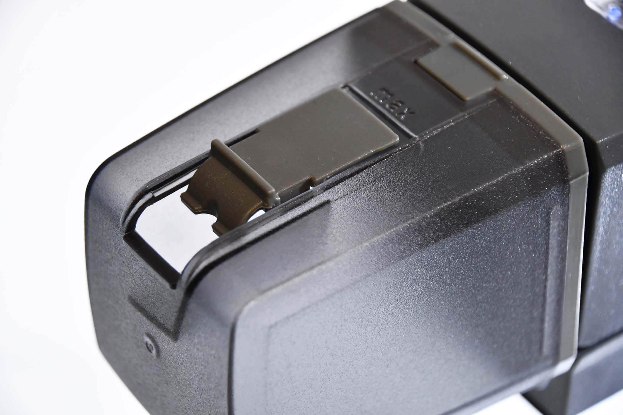 - 設置の際は、給餌コンテナの回転に支障がないよう、またエサが水槽外へ出てしまわないか事前に確認してから固定テープを貼り付けてください。