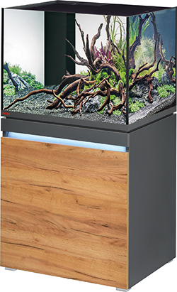 水槽、キャビネット、キャビネット用LED、配管キットがセット。奥行、高さのある水槽でさまざまなレイアウトに対応。