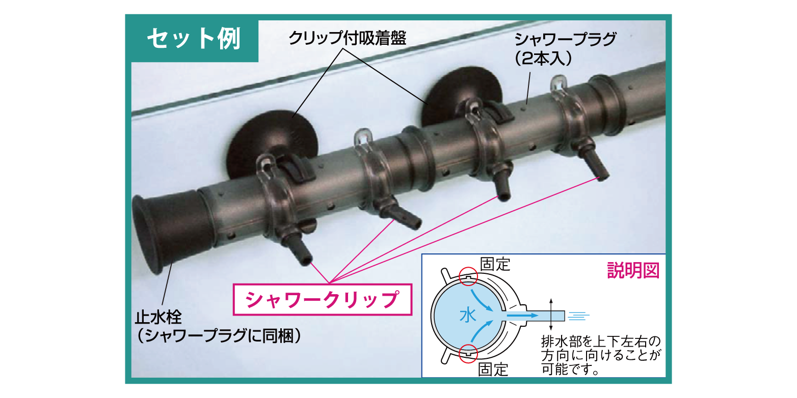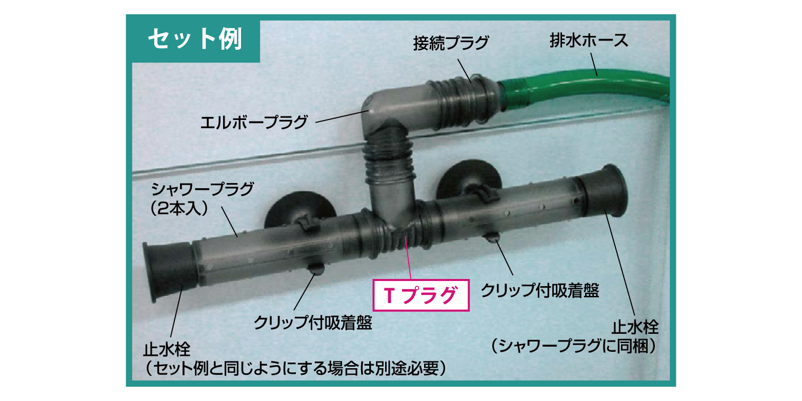 シャワープラグに取り付けることにより、左右上下お好みの方向への排水が可能です。