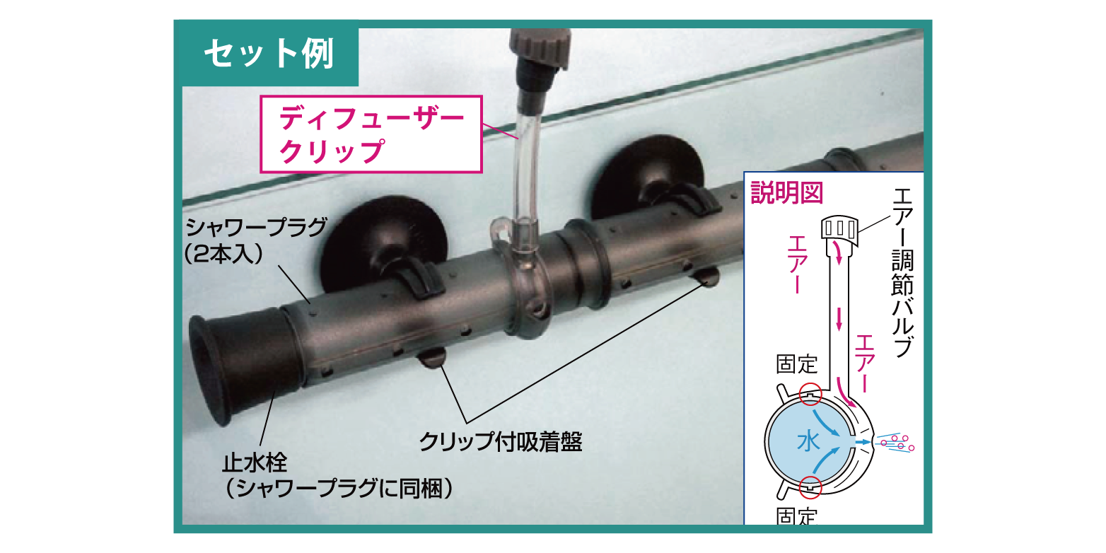 シャワープラグに取り付け、エアーを巻き込ませます。