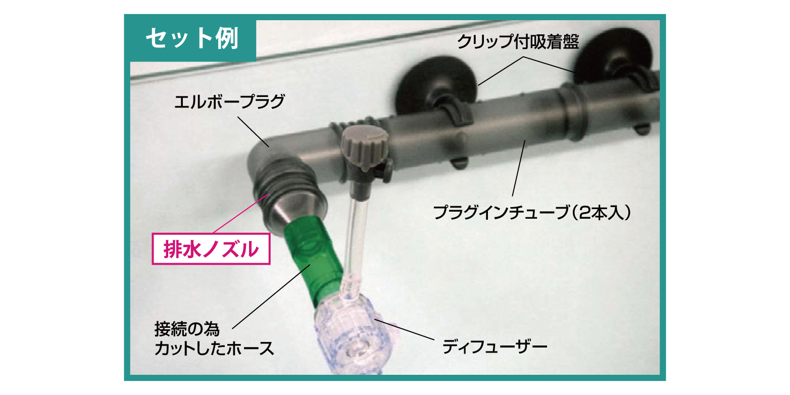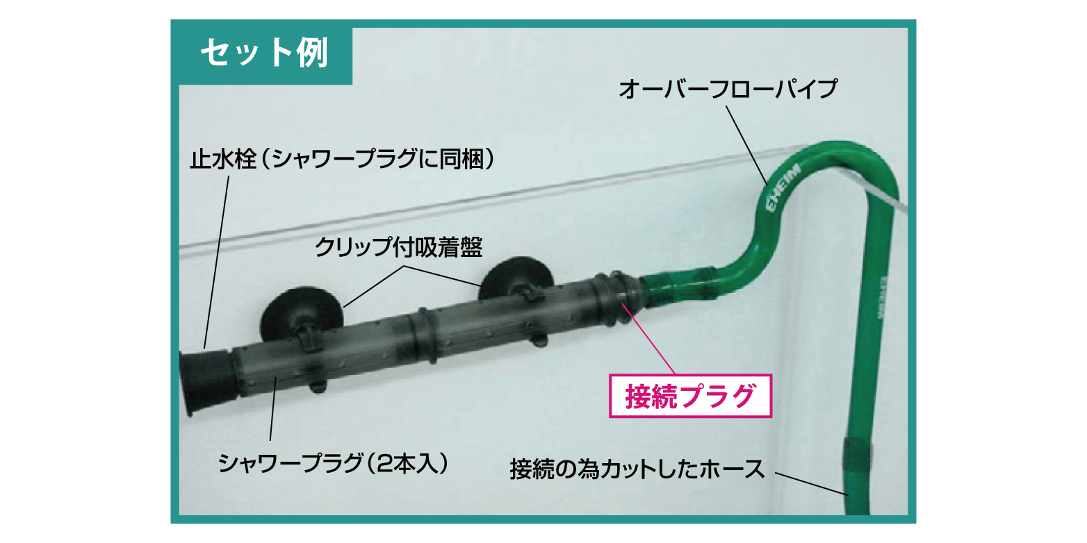 エーハイムアクセサリー(パイプ等)にインスタレーションセットを接続することができます。